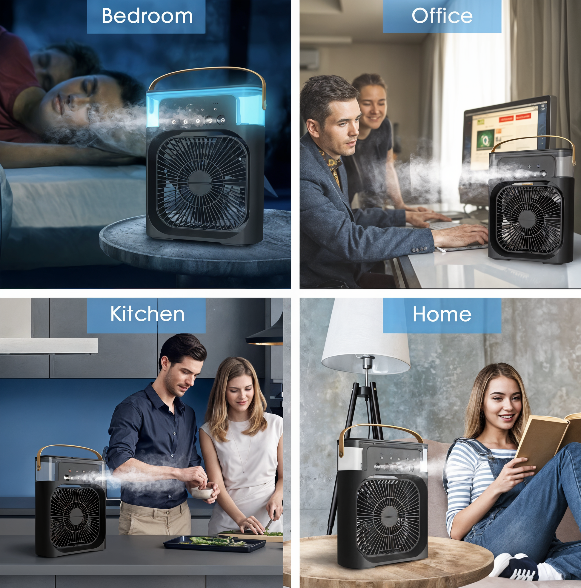 BreezeMistβ’ combines a fan, humidifier, and air refresher into one compact device. It doesnβt just cool you down β it hydrates the air and makes your space feel more comfortable, day or night.
