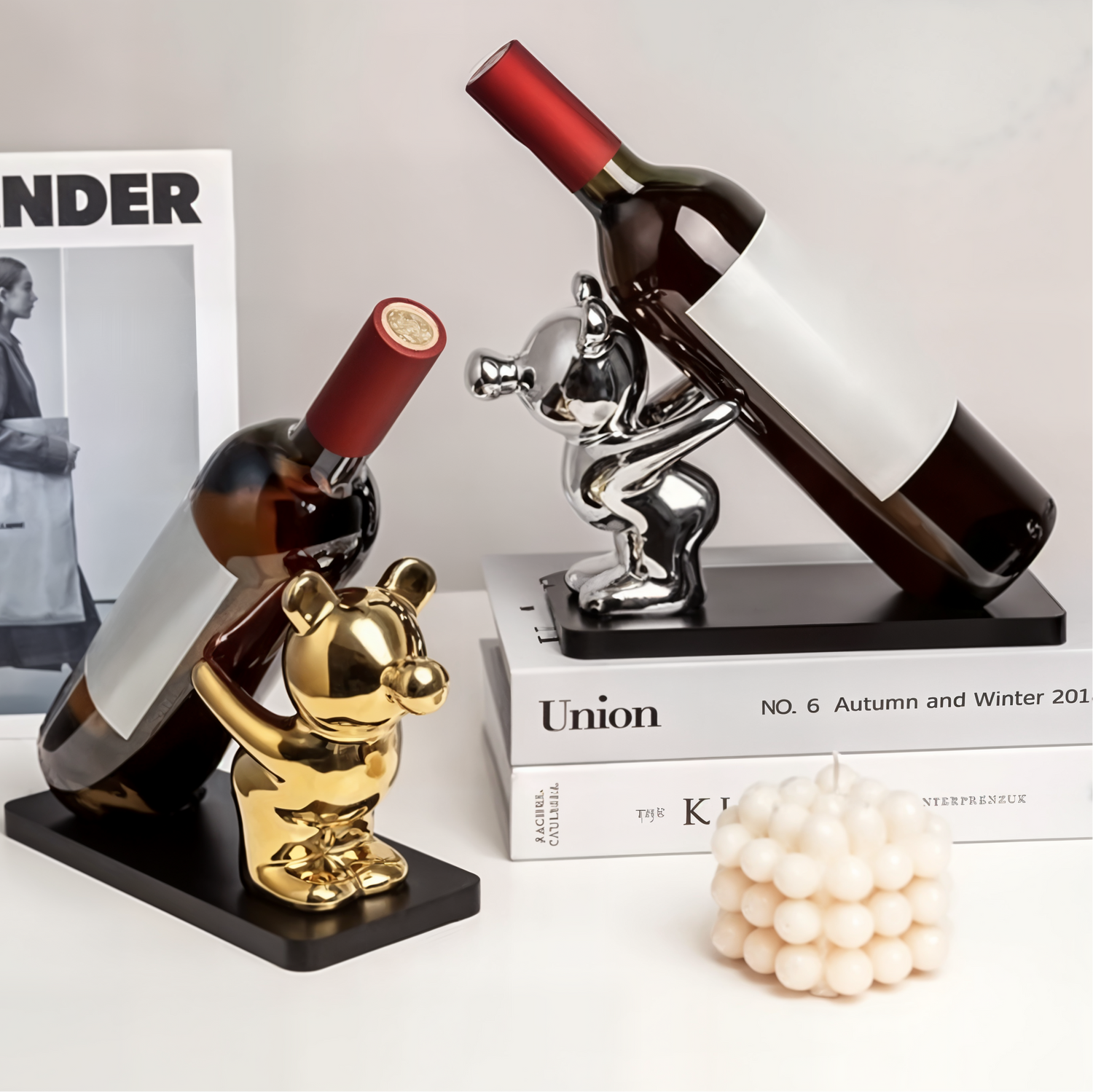 This elegant WineCraft™ rack turns your favorite bottle into a centerpiece. The artistic bear sculpture holds the bottle at a perfect angle, creating a luxurious display that elevates any home, bar, or kitchen. A functional showpiece that always starts conversations.