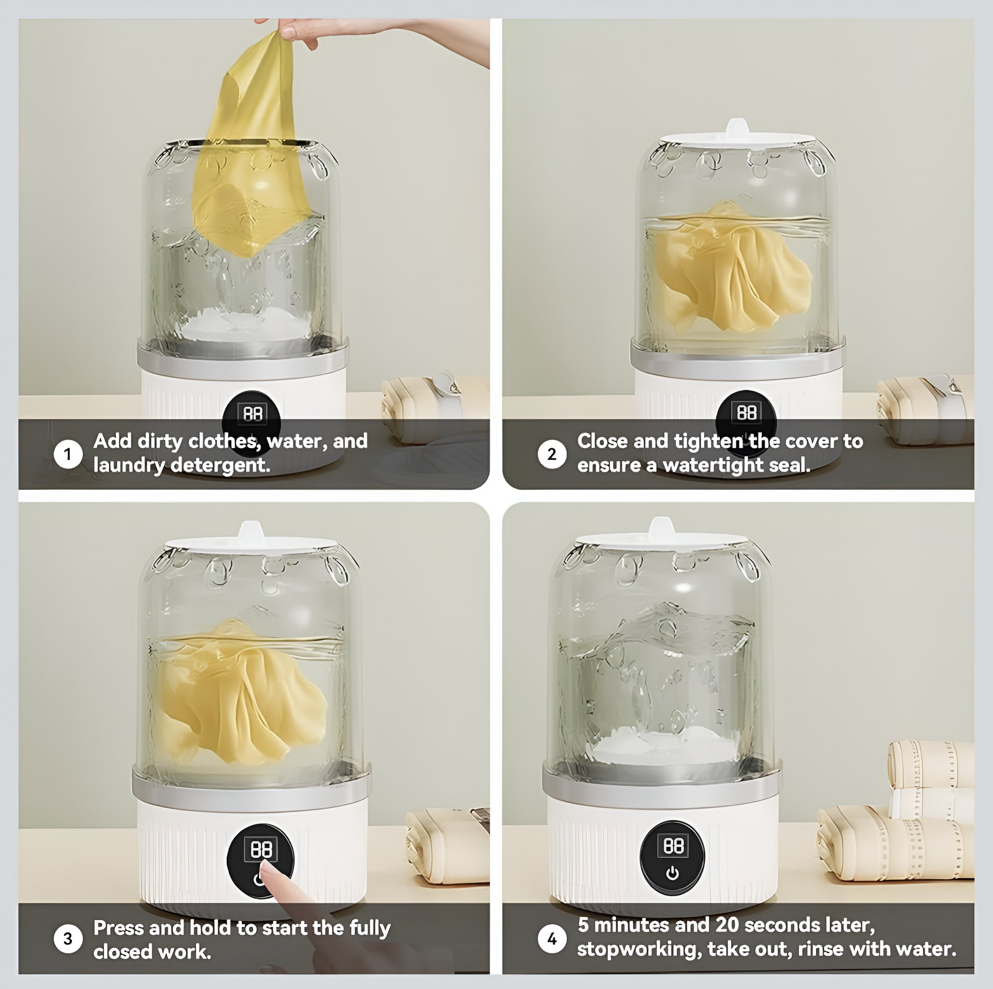 Say goodbye to waiting for the big washing machine! MiniWash™ lets you clean clothes, underwear, baby items, or even delicates anywhere, anytime. Compact, wireless, and powerful — it’s the ultimate laundry freedom.
